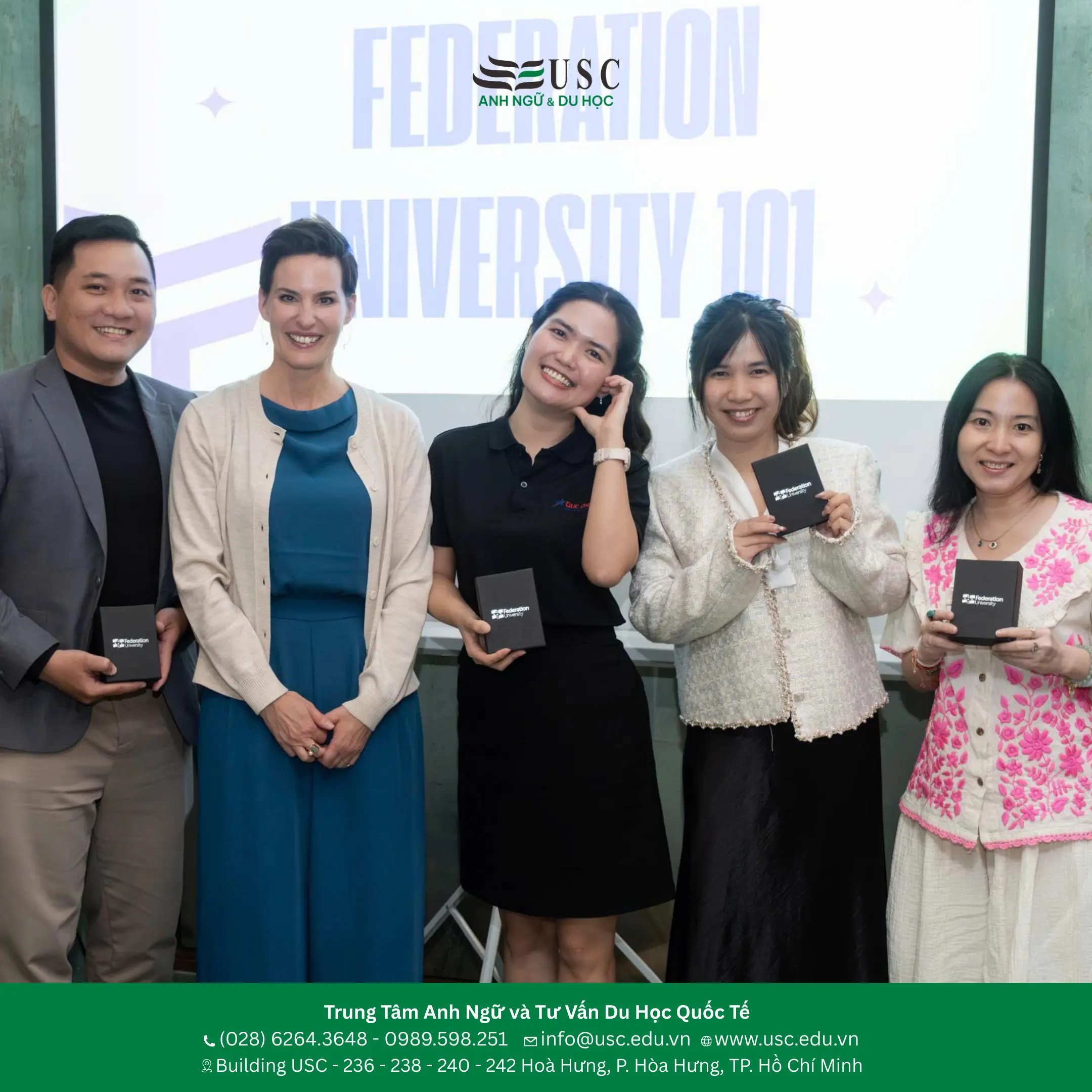 Với tư cách là đại diện tuyển sinh chính thức của Federation University tại Việt Nam, USC luôn sẵn sàng hỗ trợ bạn săn học bổng và làm hồ sơ ngay hôm nay!