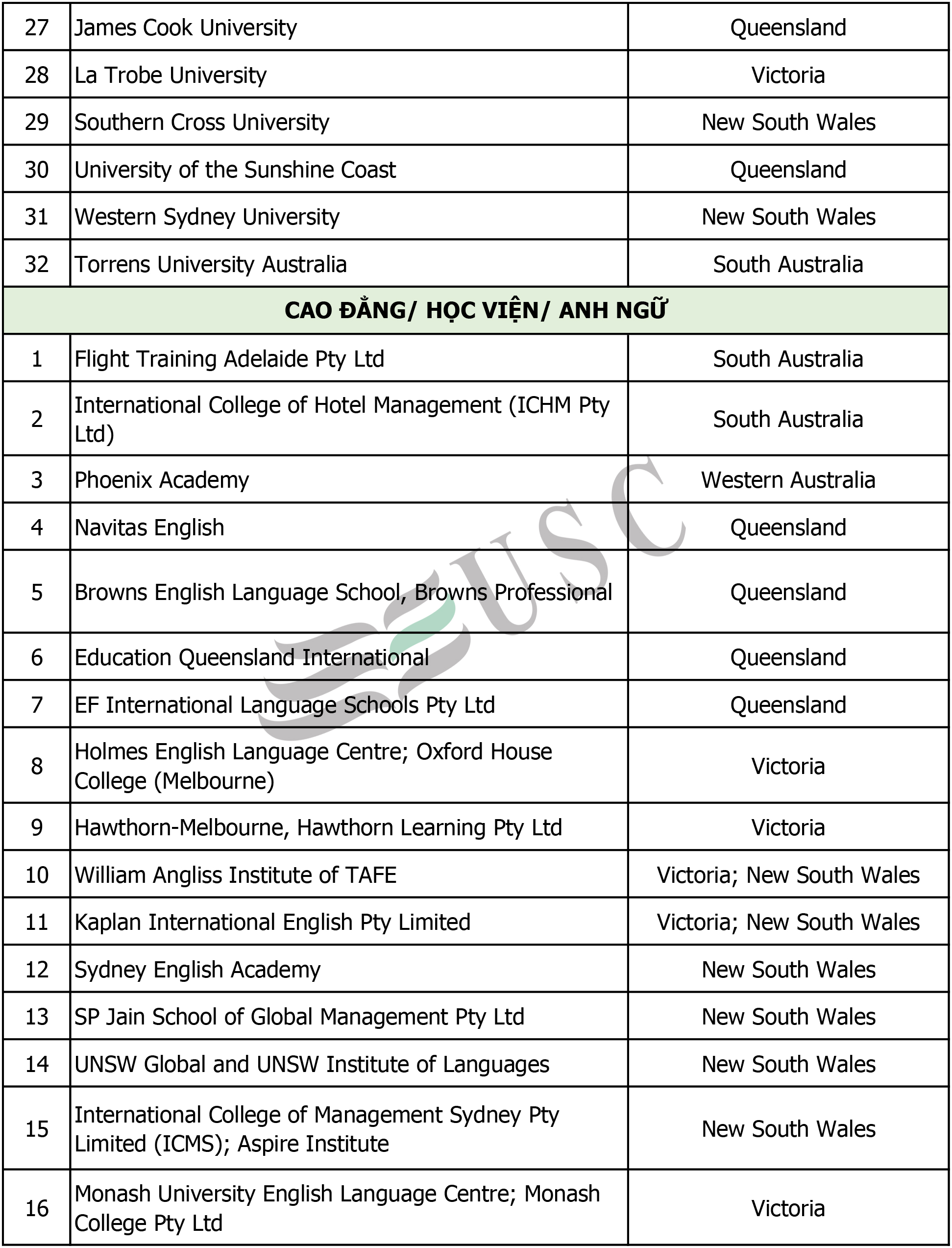 • Số lượng các trường thuộc danh sách MIỄN CHỨNG MINH TÀI CHÍNH tại Úc sẽ tăng lên đáng kể