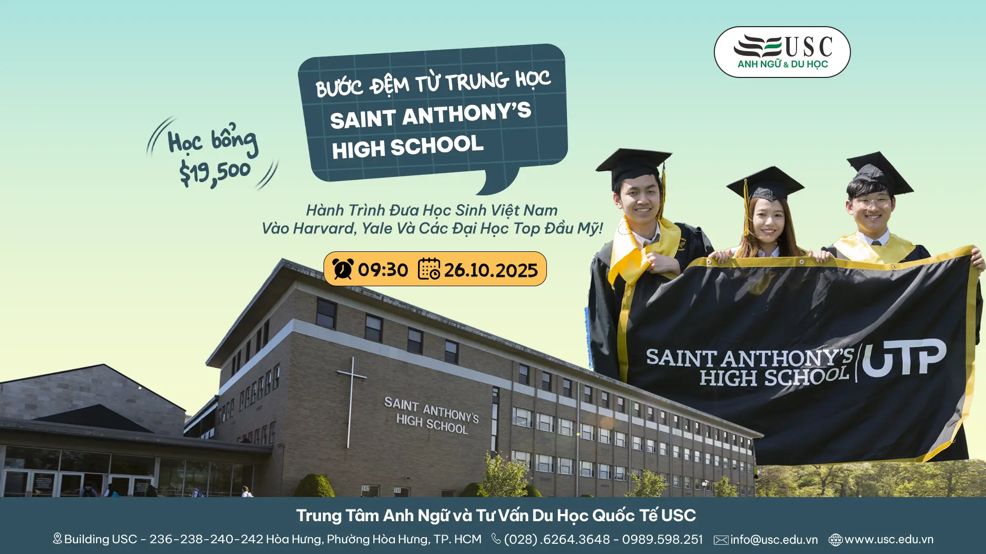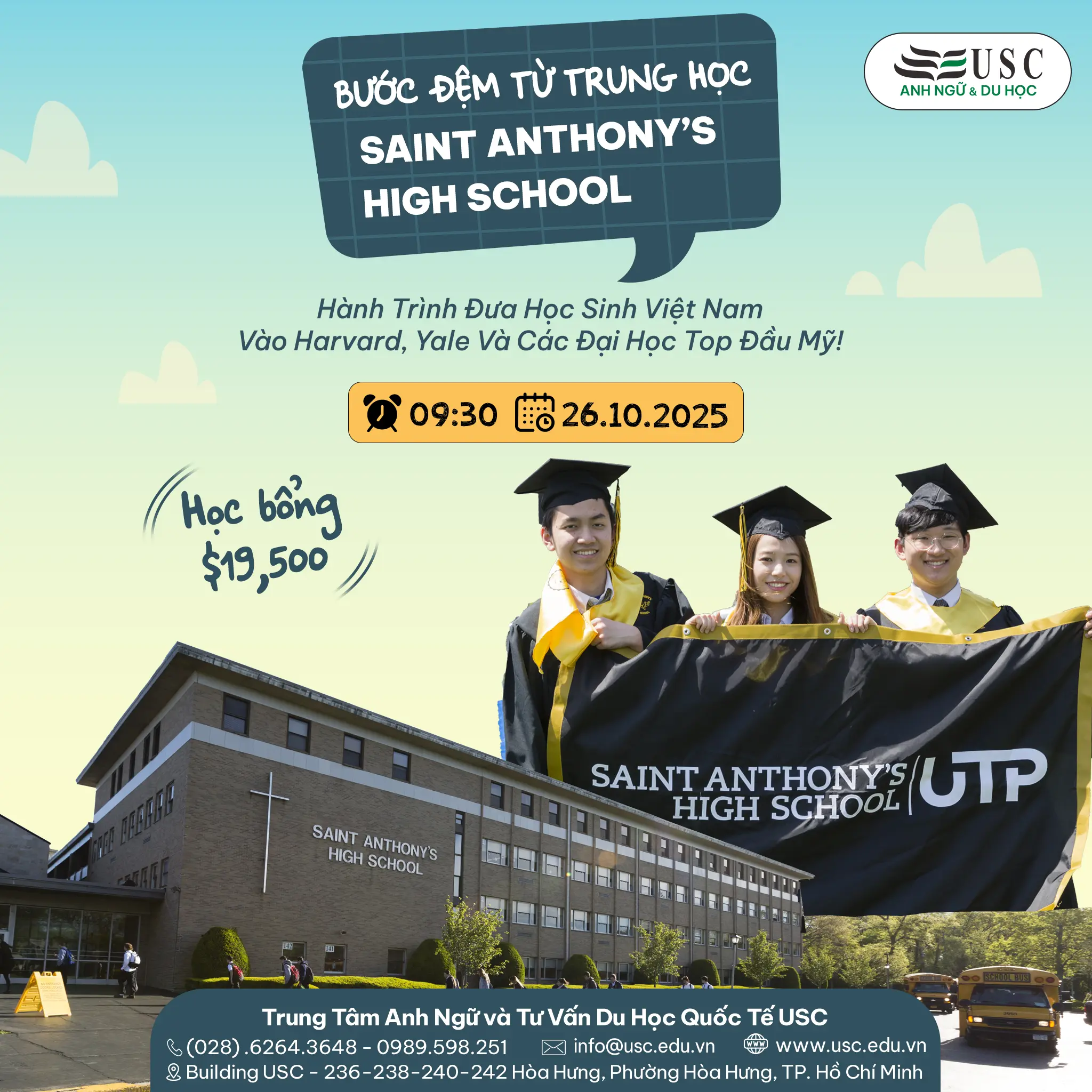 - Tư vấn trực tiếp lộ trình học tập tại Saint Anthony’s, ngôi trường dự bị đại học danh tiếng ở New York, nơi học sinh được chuẩn bị toàn diện cho bậc Đại học.