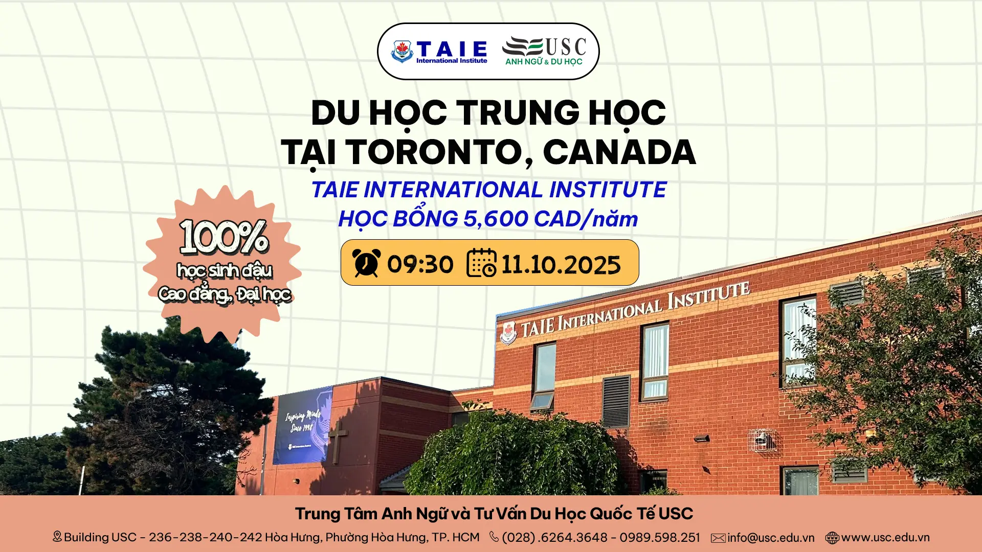 Inbox ngay USC để tham gia sự kiện và tìm ra con đường chinh phục đại học Top Canada cùng trường trung học TAIE!