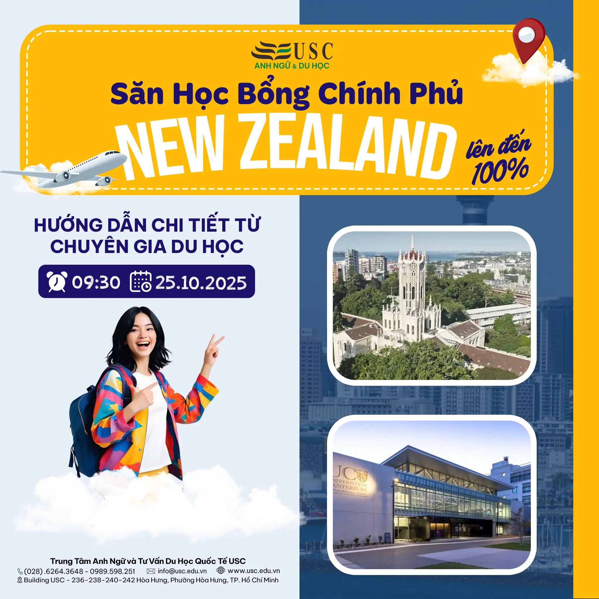 Tham gia sự kiện để nhận tư vấn trực tiếp từ chuyên gia du học New Zealand về hồ sơ ứng tuyển, cơ hội việc làm sau tốt nghiệp và chiến lược chuẩn bị cho kỳ nhập học 2026. Đây là bước đi đầu tiên giúp bạn tự tin chinh phục giấc mơ du học New Zealand!