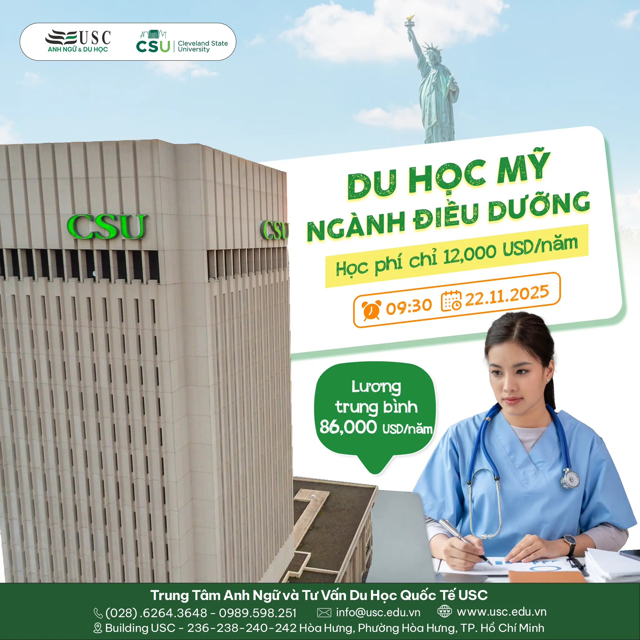 Đăng ký ngay với USC – nhiều năm kinh nghiệm hỗ trợ sinh viên Việt Nam du học Mỹ – nắm chuẩn thông tin về chương trình học, học bổng và cơ hội việc làm ngành Điều dưỡng tại Mỹ!