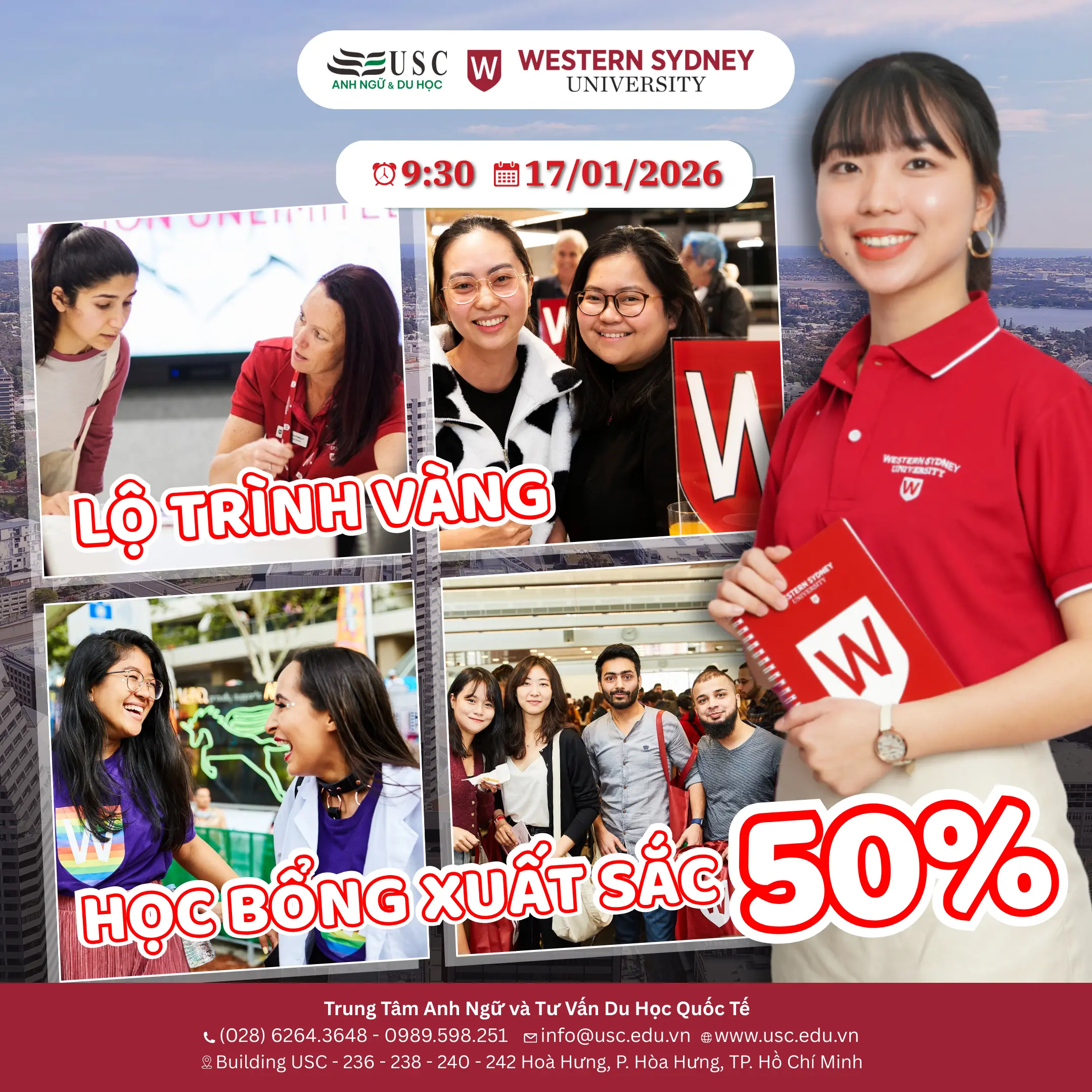 Đừng bỏ lỡ sự kiện độc quyền: Trao đổi trực tiếp cùng Ms. Trang – Đại diện trường Đại học Western Sydney (WSU) tại USC!